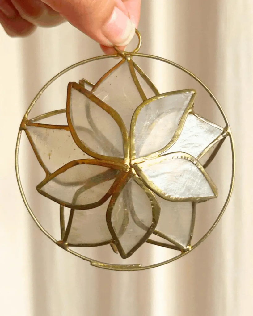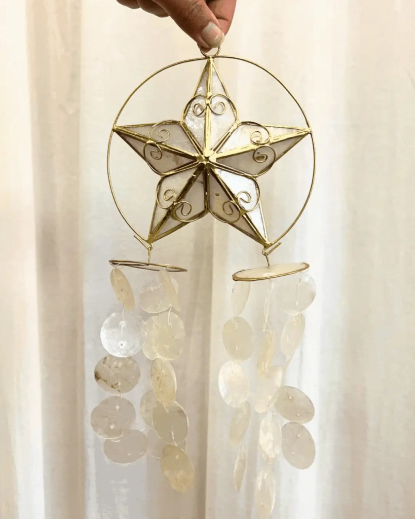 Styling Tips: Use the Parol as a striking centerpiece for your entryway, hang capiz ornaments on your tree or windows, and add chime ornaments to your porch for a musical welcome. Our capiz chime ornaments are also available in a Tala Star, Sampaguita, or Poinsettia designs.